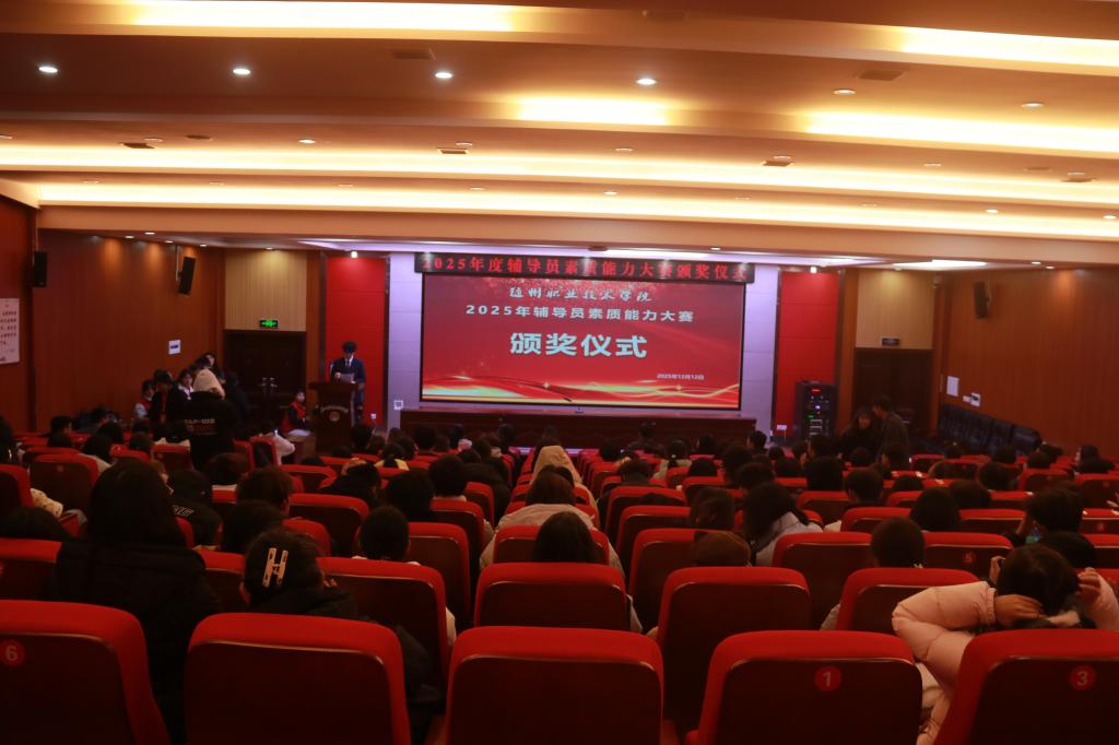 12月12日下午,2025年随州职业技术学院辅导员素质能力大赛颁奖仪式在学术报告厅隆重举行。党委委员、副校长邹厚亏,党委学生工作部部长钟守兵,校团委副书记王安琼,各二级学院党总支书记、副书记、学工办主任,全体专兼职辅导员及学生代表共160余人齐聚现场,共同见证荣耀时刻。